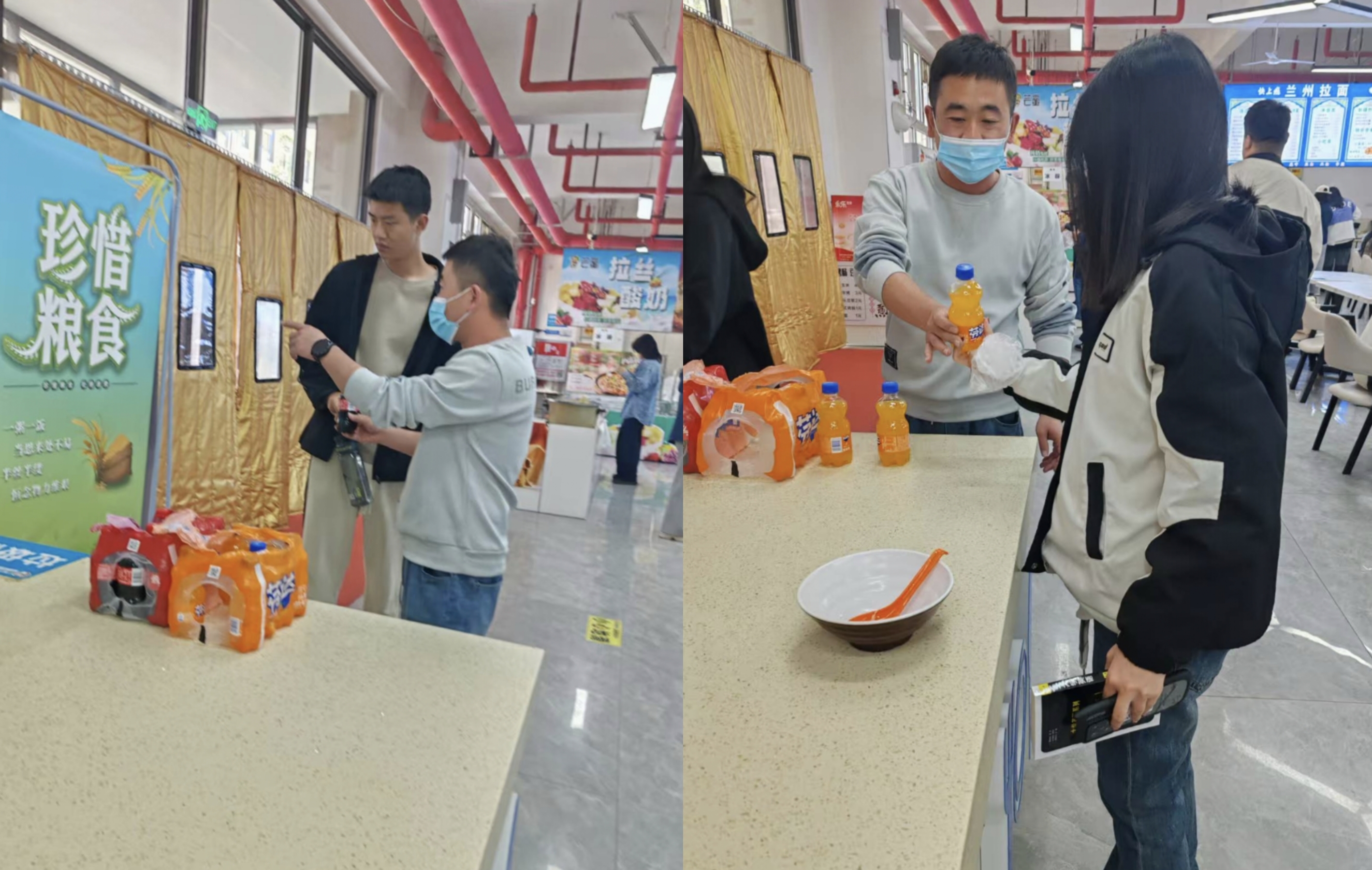 4月15日中午,鹿泉校区各食堂开展了以“光盘行动,节约粮食”为主题的活动,旨在通过趣味互动形式倡导校园文明用餐新风尚。活动期间,工作人员在收餐台旁设立宣传点,向师生普及节约粮食知识,对践行“光盘”的同学发放小瓶饮料、棒棒糖等奖励。清甜饮品与醒目标语吸引大量学生驻足参与,餐盘回收处的空盘率显著提升。